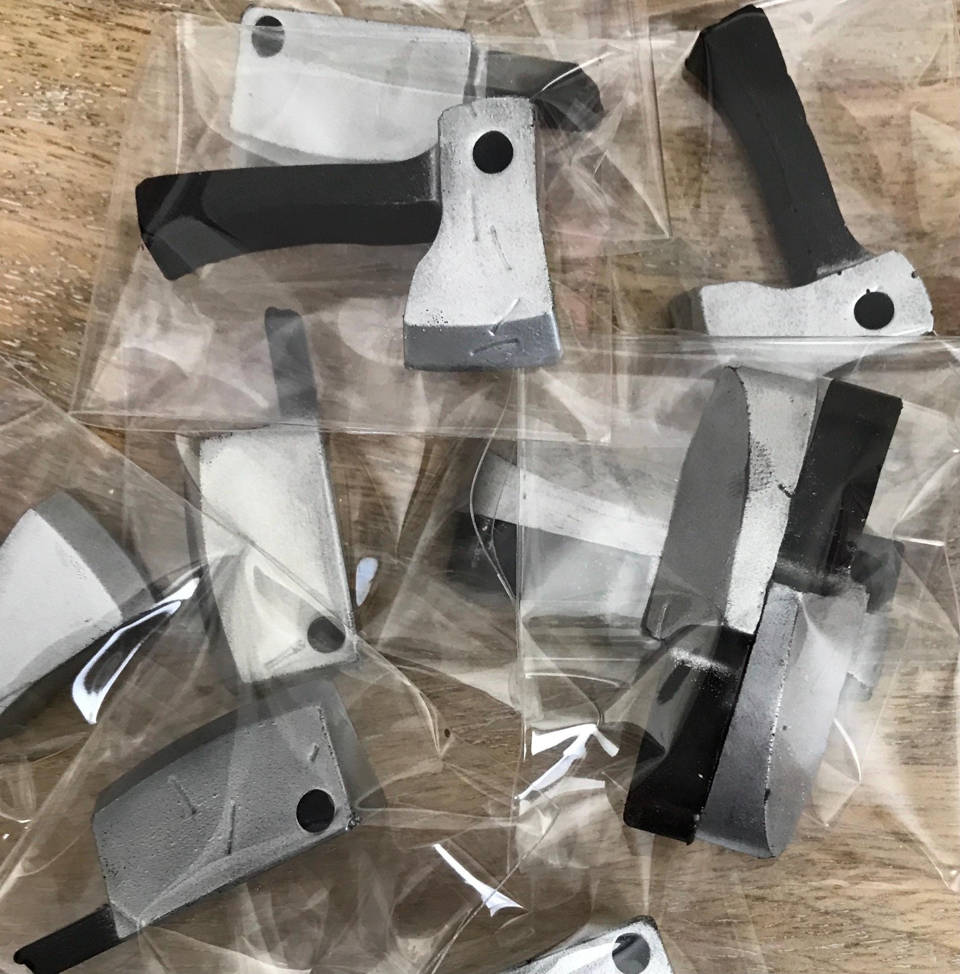 - Designs: Butcher knives and axes with detailed features