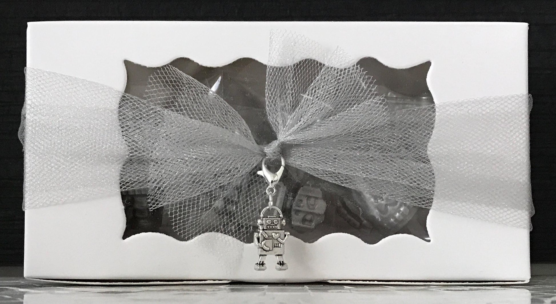 These charming chocolate robots feature a sleek silver finish that captures the futuristic appeal kids and tech enthusiasts love. Perfect as party favors, cupcake toppers, or standalone treats, they add a fun technological twist to any celebration.