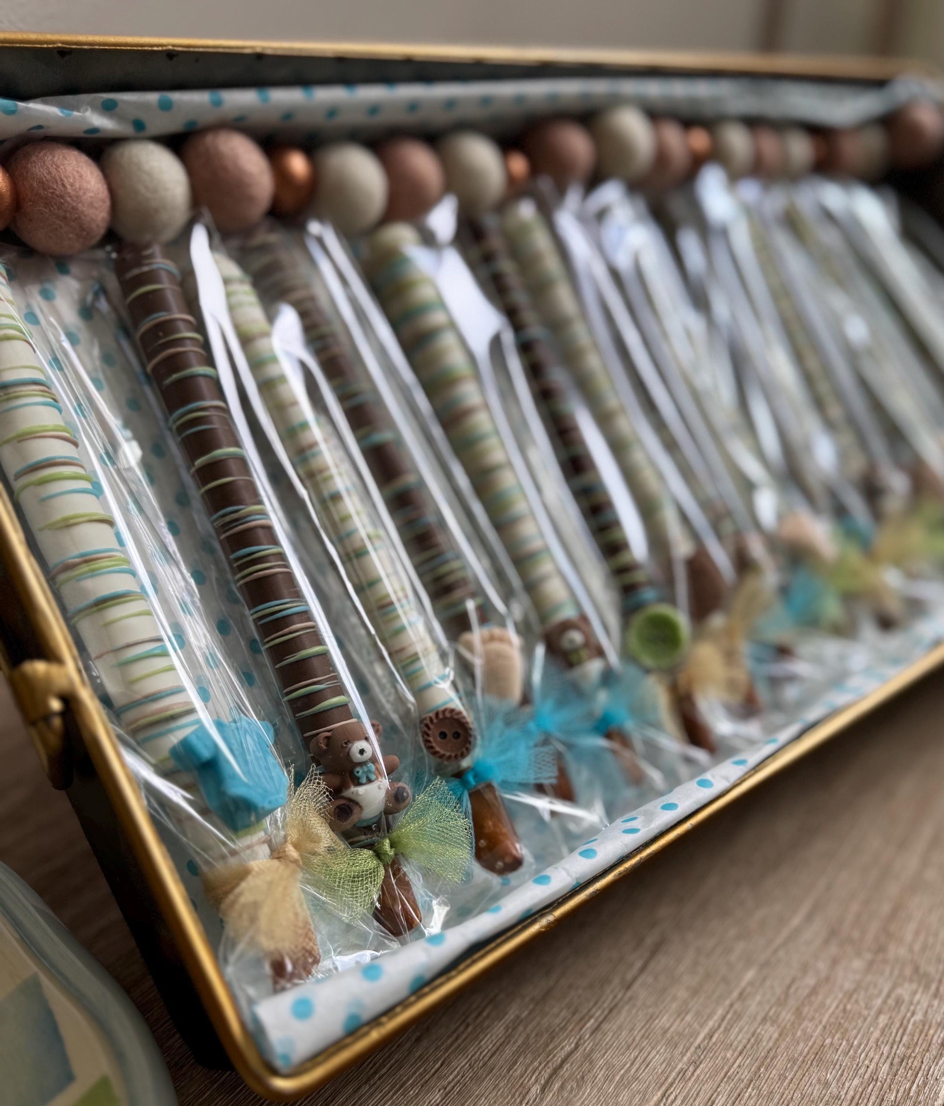Celebrate the arrival of a new baby with our elegant Custom Baby Shower Chocolate Covered Pretzel Rods! These gourmet treats are hand-dipped in smooth premium chocolate and customized to match your baby shower theme. Perfect as party favors, dessert table centerpieces, or thoughtful gifts for guests.