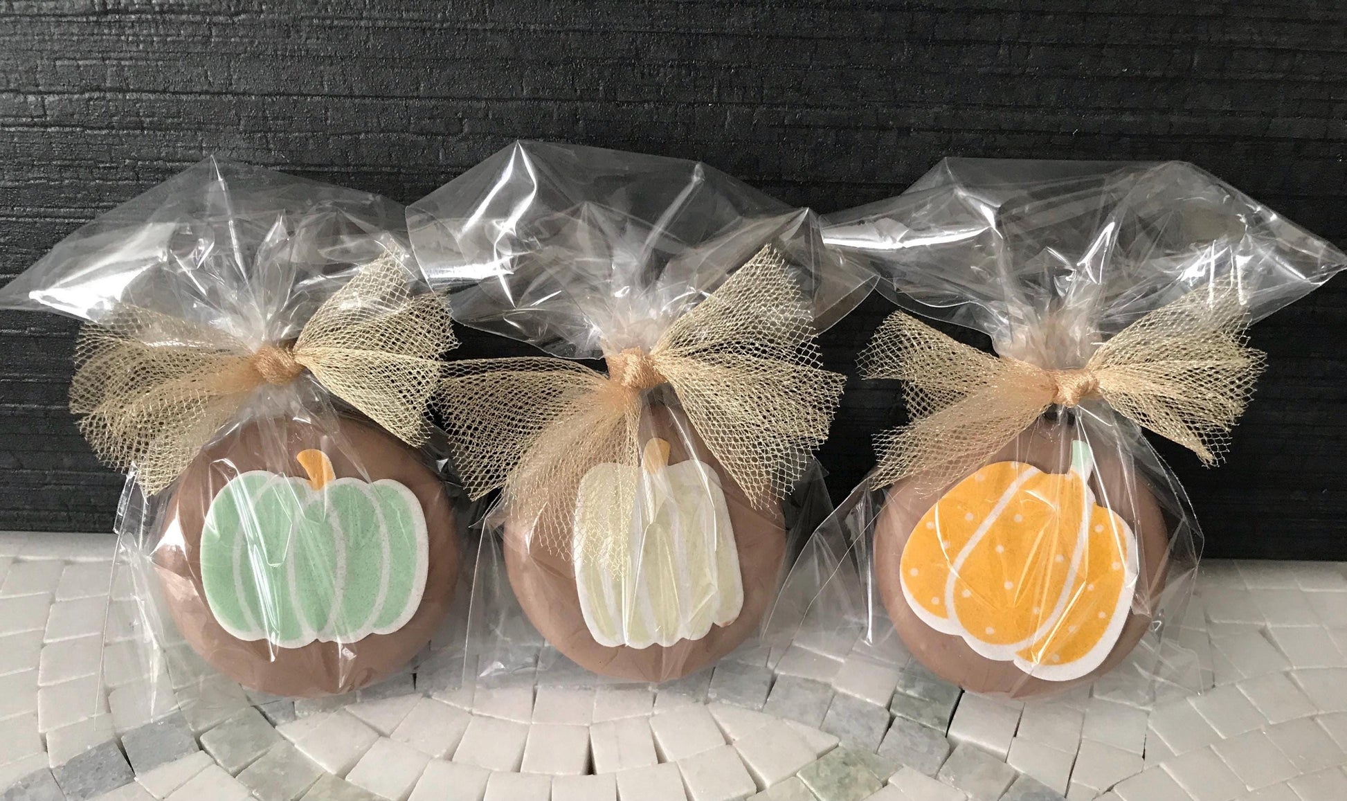 Each Oreo cookie is carefully hand-dipped in premium Guittard chocolate and decorated with charming edible wafer paper pumpkins, creating a beautiful autumn presentation. The individual wrapping with tulle bows makes them perfect for party favors or elegant gift giving.