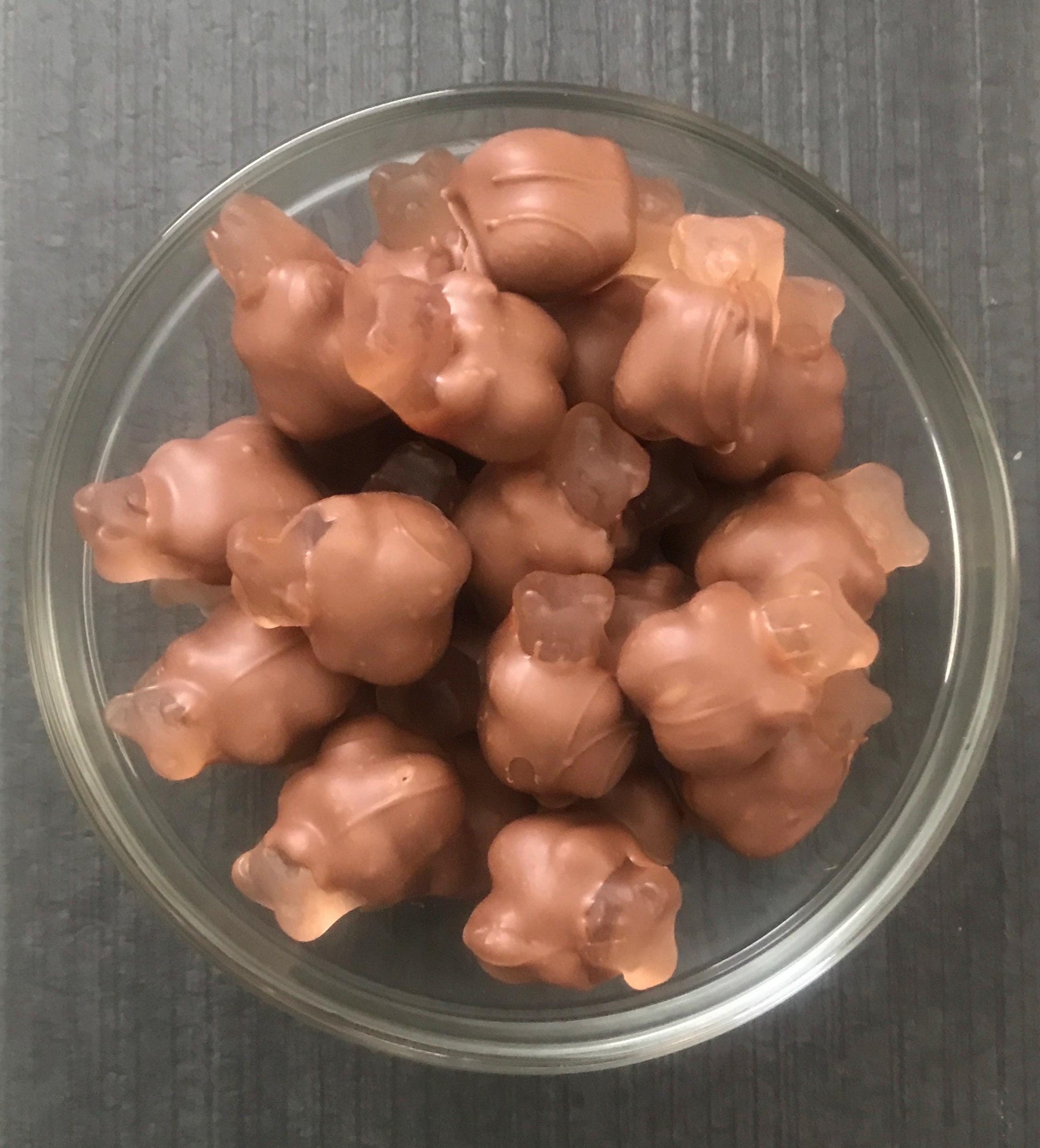 - Flavor: Pink grapefruit gummy bears with milk chocolate coating